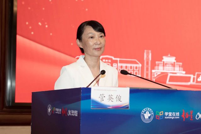 管英俊在致辞中介绍了学校的基本情况以及近年来学校坚持教育数字化改革发展取得的成绩,她表示,教育数字化是我国开辟教育发展新赛道和塑造教育发展新优势的重要突破口,推进高等教育数字化转型发展,对于建设教育强国具有重要意义。下一步,学校以此次会议为契机,与各位专家、学者开展深度交流合作,将持续打造“人人皆学、时时能学、处处可学”的智慧化学习型校园,全面落实国家教育数字化战略行动,加大投入与支持力度,提升师生数字素养,将数字资源蕴含的巨大势能转化为教育改革创新的强大动能,为加快教育现代化、建设教育强国与健康中国作出新的更大贡献。