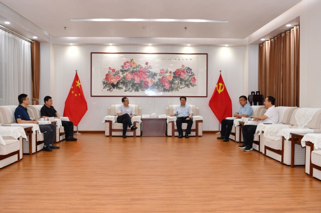 8月14日下午,学校省派“第一书记”派驻地五莲县委副书记(挂职)马文一行来校考察交流。副校长王承高,党委委员王世群、刘汉波参加活动。
