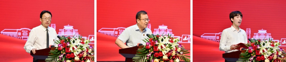 济南市第五人民医院党委书记安健、中医学院院长孙长岗、临床医学院2022级临床医学专业李湛分别发言。