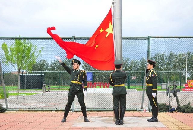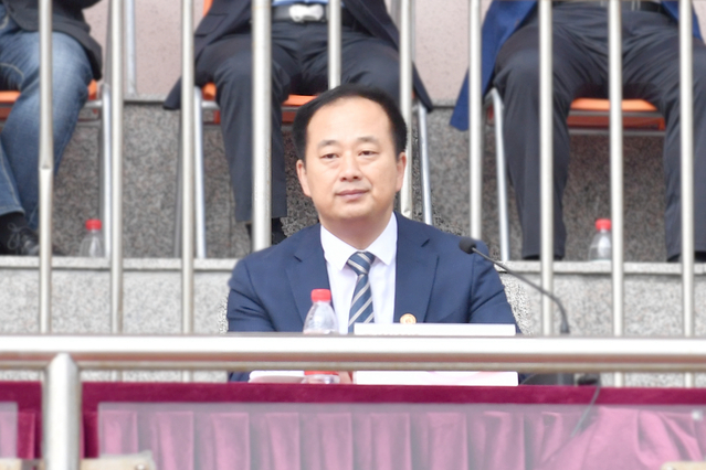 大会在庄严的国歌声中拉开帷幕。校长管英俊宣布2024年学生军训汇报检阅式开始,并和与会领导一起检阅军训训练成果。