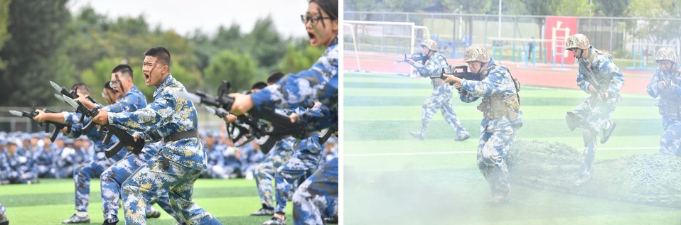 队列训练、条令学习、内务整理、格斗实训、集合拉练、教唱军歌、战场救护......为期21天的军训在同学们《强军战歌》的嘹亮歌声中画上了圆满句号,丰富多彩的大学生活徐徐拉开帷幕。