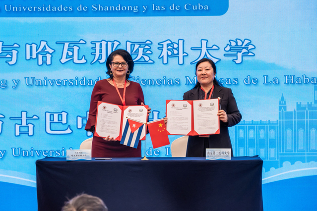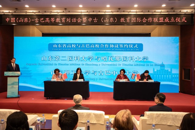 在此次对话会上,学校成为中古(山东)教育国际合作联盟首批成员单位,与哈瓦那医科大学签署学生联合培养协议,并与哈瓦那大学等古巴高校洽谈交流。