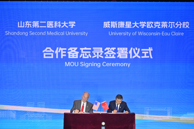 10月24日,由山东省教育厅主办,青岛大学与山东省华美国际教育研究院联合承办的中美(山东)高等教育交流与合作论坛在青岛举行。山东省教育国际交流协会副会长孙祖兴,山东省教育厅国际交流与合作处处长王夫海,美国德雷克大学校长马蒂·马丁,美国威斯康星大学欧克莱尔校区校长詹姆斯·施密特等出席论坛,美国前驻华大使、世界粮食奖基金会主席特里·布兰斯塔德,美国艾奥瓦州州议员、州医疗协会会长史蒂文·丘吉尔线上出席,必赢官网副校长张忠应邀出席并代表学校签约。