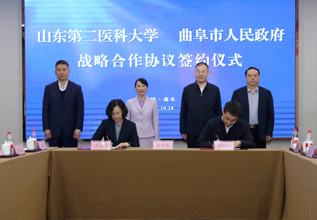 10月28日,学校与曲阜市人民政府战略合作协议签约仪式在曲阜举行。校长管英俊,副校长卢国华,纪委书记、监察专员孔令军,曲阜市长崔加清参加活动,副市长侯晨硕主持签约仪式。