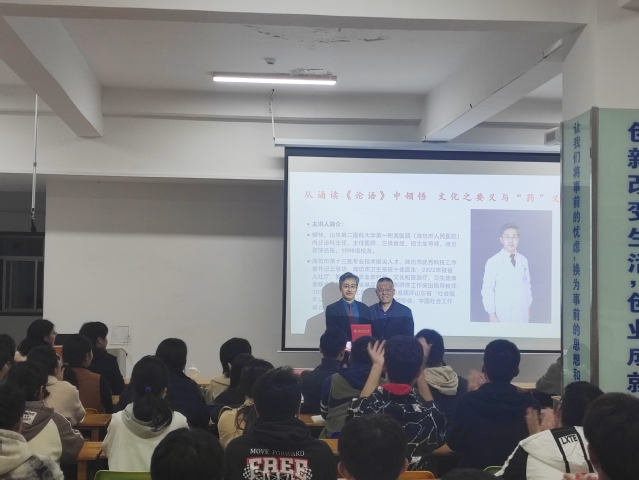 讲座从文化的要义、“药义”、医学与儒学文化交融下的健康理念、现代医学文化与健康、习惯成就人生等多个角度出发,阐述了文化的定义、特征和组成部分以及相互之间的关系;医学与儒学文化交融浸染、相互影响的理念。对高等院校医学人文教育现状进行了剖析,结合当代社会对医疗服务需求现状,强调秉承正确的义利观与实践精神。讲座最后呼吁同学们,现代医学文化与健康休戚相关,希望大家以健康为中心,养成人生良好习惯。讲座气氛热烈融洽,教室里笑声朗朗、掌声阵阵,同学们沉浸其中,享受了一场文化学术盛宴,纷纷表示受益匪浅,对医者仁心有了全新的理解和认识。未来将继续深入学习医学专业知识,不断加强自身修养,为健康中国建设和中华优秀传统文化的传承贡献自己的力量。