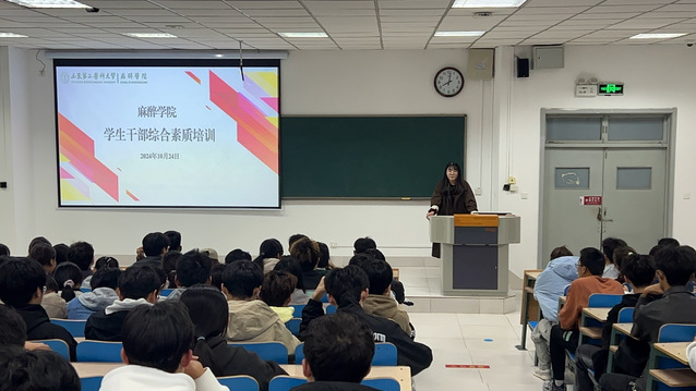 近日,麻醉学院在A303教室开展学生干部综合素质提升专题培训会。学院辅导员,优秀学生干部代表,院学生会和2024级全体班团委员参加了本次培训。