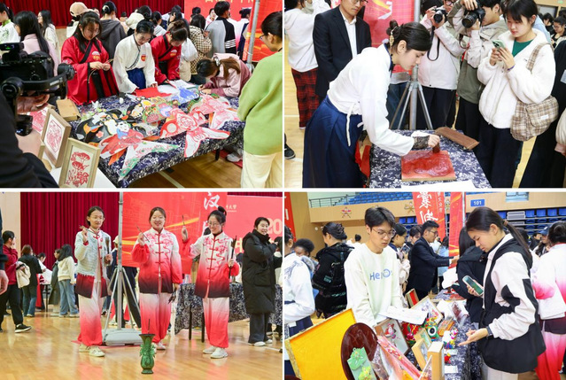 体验环节同样吸引了众多学生的参与。活动特别设置了项目推荐官,带领学生们领略了汉服体验、风筝扎制、香囊制作、拓印、五禽戏、滚铁环游戏和投壶竞技等特色项目。