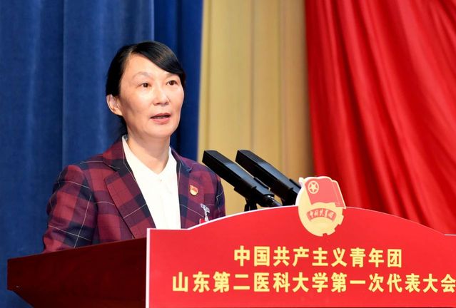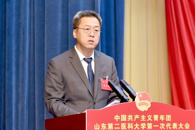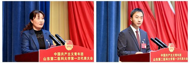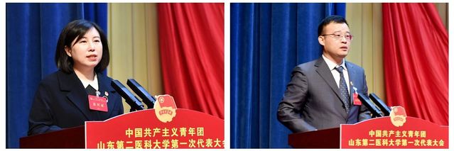 共青团潍坊市委书记李飞代表潍坊团市委、潍坊学院团委书记江浩浩代表兄弟高校团委、校工会主席黄爱文代表学校群众团体先后致辞,对大会的召开表示祝贺。校团委书记赵建辉代表共青团潍坊医学院第七届委员会向大会作了题为《高举团旗跟党走,奋楫扬帆新征程,为加快建设特色鲜明、国内知名的高水平医科大学贡献青春智慧和力量》的工作报告。