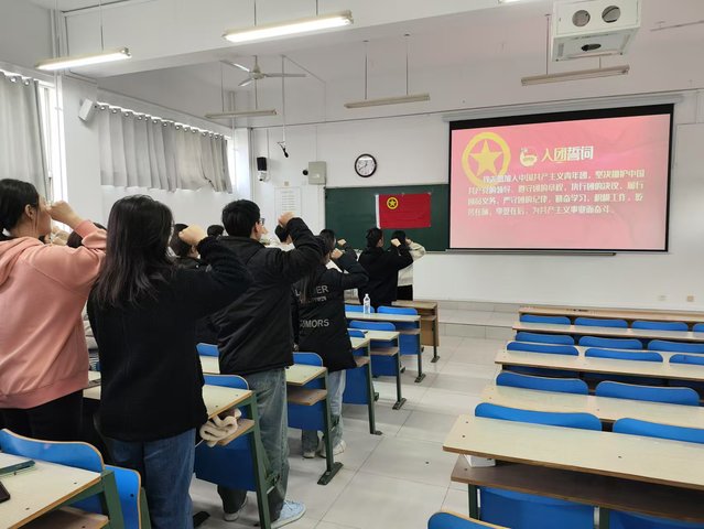 近日,生命科学与技术学院在教学楼D303举行了2024年新团员入团仪式。2024年新入团团员和团员代表参加。