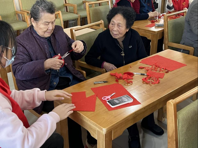 志愿者们一边讲解剪纸的历史渊源和技艺特点,一边现场演示,将一张张普通的红纸剪成了精美的艺术品。老人们纷纷动手尝试,体验剪纸的乐趣。在剪纸的过程中,大家一边剪一边聊,认真倾听老人们分享的生活经验和人生感悟,活动现场氛围温馨,充满了欢声笑语。活动结束后,志愿者们对老年服务中心进行卫生打扫,提升老年人的居住环境。