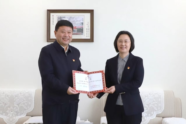 卢国华为王传喜颁发学校思政育人特聘导师聘书。