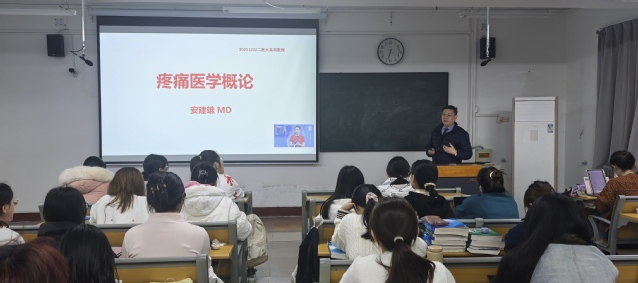 12月2日,麻醉学专业2021级本科学生2024-2025学年第二学期伊始即将开展实习见习,我国失眠与疼痛创新诊疗领域学科领军人物、国务院政府特殊津贴专家、必赢官网麻醉创新诊疗研究院院长、博士研究生导师安建雄教授,为麻醉学院师生讲授《疼痛诊疗学》开学第一课。麻醉学院院长张蕊、授课教师代表等到教室听课。