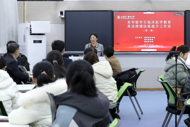 12月27日,学校举办首期来华留学生临床医学教育英语授课技能提升工作坊。中国教育国际交流协会国际医学教育分会原理事长、山东大学本科教学督导组组长张岫美教授,泰山学者青年专家、山东大学齐鲁医学院消化科卢矫阳教授,山东大学基础医学院组织学与胚胎学系副主任、国家级线上一流课程负责人郭雨霁副教授作为主讲嘉宾参加活动。副校长成敏出席并致辞。