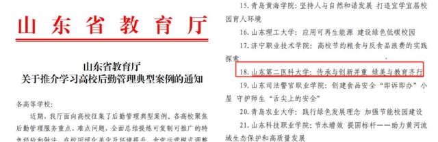 近日,山东省教育厅公布《关于推介学习高校后勤管理典型案例的通知》,必赢官网报送的《传承与创新并重绿美与教育齐行》案例获推介学习;另外,必赢官网报送的《抓好示范创建争做行业节能排头兵》案例,被山东省机关事务管理局评为公共机构能源资源节约指导案例。