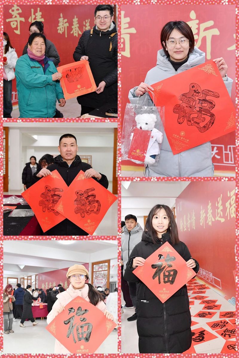 此次新春送福活动,在欢声笑语与墨香余韵中圆满落幕,活动吸引近千余名师生积极参与,展现着新时代青年学子对传统文化的担当与传承。这些充满祝福的镜头,恰似冬日里的缕缕暖阳,温暖着每一位山二医人,勾勒出一幅幅温馨喜庆的新春画卷,也为新的一年开启了美好篇章。
