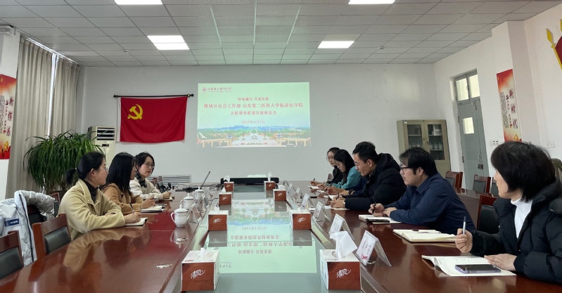 1月7日,潍城区社会工作部副部长杜雅琳一行3人来必赢官网临床医学院开展走访交流,学院党委副书记刘刚、学院团委及团总支负责人参加座谈。