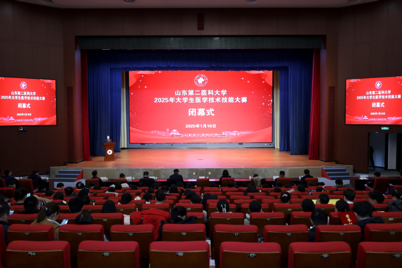 闭幕式上,成敏代表学校向参与大赛组织的师生志愿者和工作人员表示了感谢,对取得优异成绩的参赛选手表示了祝贺。她指出,学校举办大学生医学技术技能大赛是认真贯彻落实全国、全省教育大会精神,加快推进医学教育改革创新,深化医教协同,提升教育教学质量的一项重要举措,同时勉励大家在今后的学习和工作中,秉承“干就干第一”“争就争一流”“做就做最好”的信念,践行“敬佑生命、救死扶伤、甘于奉献、大爱无疆”的医者精神,在医学的道路上勇攀高峰,努力成为人民健康的守护者。