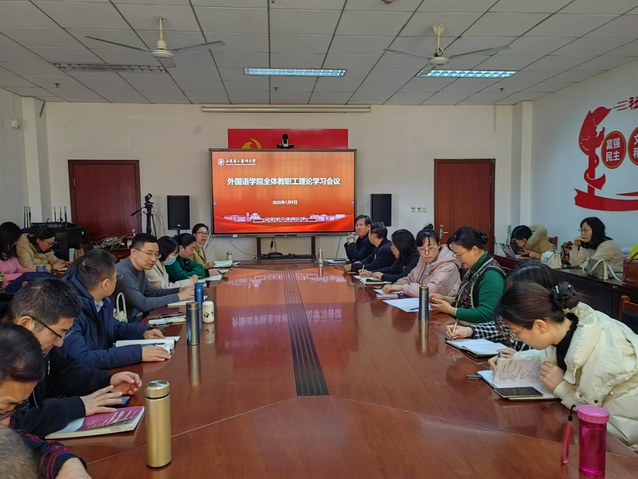 副书记朱宏带领大家学习习近平主席二O二五年新年贺词以及关于扎实推动教育强国建设的重要讲话精神。结合“教育强国,外语何为”的命题,强调全体教师在教育强国建设中找准外语教育的定位与方向,为培养具有国际视野和跨文化交流能力的专业人才贡献力量。