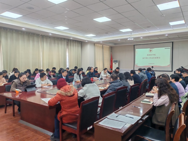 2月21日下午,基础医学院召开2025年新学期工作动员部署会。学院党委书记楚新艳主持会议,学院领导班子成员及全体教师线上线下参会。