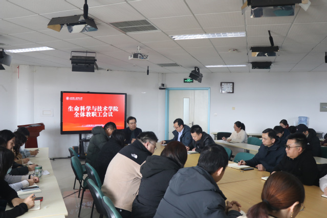 2月24日,生命科学与技术学院在敏行楼11442会议室召开新学期全体教职工会议,会议由学院党总支书记张伟主持,学院班子成员及全体教职工参会。