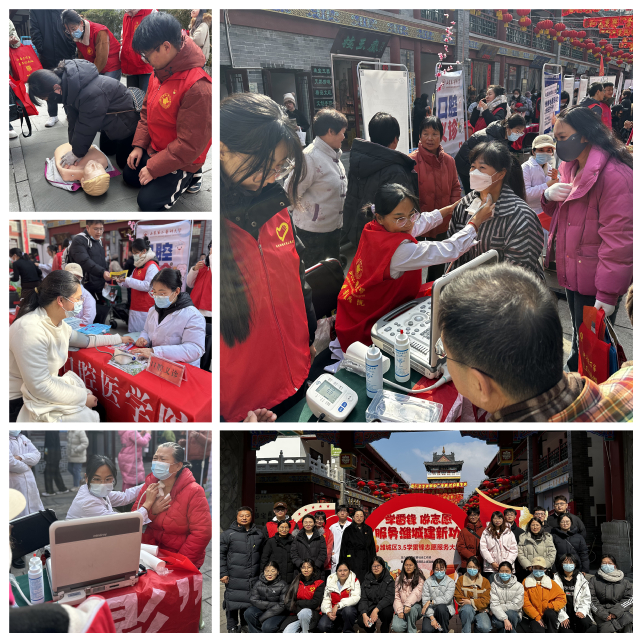 3月5日上午,学校师生志愿者们早早来到潍城区十笏园街区设置好了义诊摊位。临床医学专业的志愿者使用模拟人现场演示教学,普及心肺复苏、海姆利克急救等应急救护知识;口腔医学专业的志愿者提供口腔基础检查,给出口腔治理建议,现场讲解巴氏刷牙法,宣传口腔健康知识;医学影像专业的志愿者携带B超机,现场为社区居民做起了甲状腺检查,并结合血压、血糖检测提供健康咨询和指导,用所学专业传递雷锋精神、践行志愿服务。