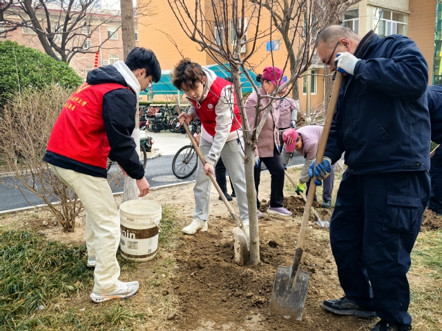 活动当天,志愿者们身着整齐的志愿者服装,早早地奔赴社区植树点。到达后,迅速与社区居民会合,一场充满活力的绿色行动就此开启。大家植树热情高涨,分工明确有序。在专业人员的耐心指导下,挥锹铲土,翻松泥土,扶苗填坑,让树苗稳稳扎根。每一个环节,每一个步骤,大家都做得一丝不苟。整个社区呈现出一片热火朝天的劳动景象。