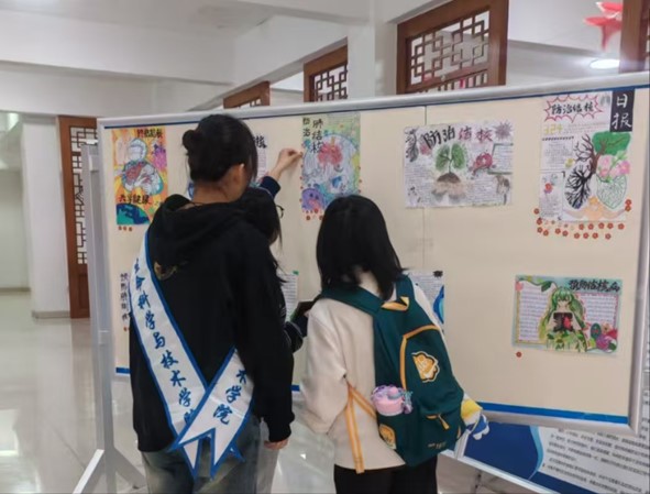活动现场,书院的宣传栏区域被一幅幅精心制作的宣传画板装点得格外醒目。这些画板内容丰富、详实,通过图文结合的方式,生动形象地展示了传染病的相关知识。在志愿者的耐心细致讲解下,师生们深入了解了传染病的危害、传播途径以及预防措施,对这一传染病的认知有了更加全面和深刻的理解。在手抄报展示区,一幅幅凝聚着学生们的智慧和心血的手抄报作品从不同角度诠释了传染病防治的主题,有的重点强调了预防的要点,有的则科普了治疗政策。活动还特别设置了投票环节,参与者可将手中一票投给自己喜爱的作品,在投票过程中,也进一步加深了对肺结核防治知识的记忆。在留言区,老师和同学们纷纷写下自己的留言。