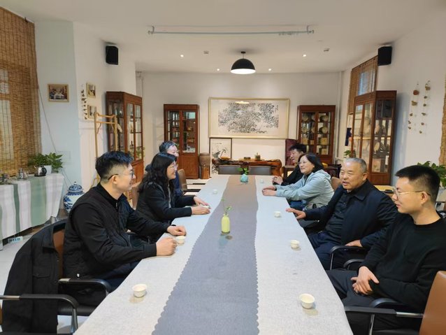 国际风筝会综合服务中心一行参观了学校孔子学堂非遗工作室和作品展陈室,人文艺术教育中心教师、国际风筝联合会文化促进委员会委员邢鹏飞对学校非遗课程做了介绍。
