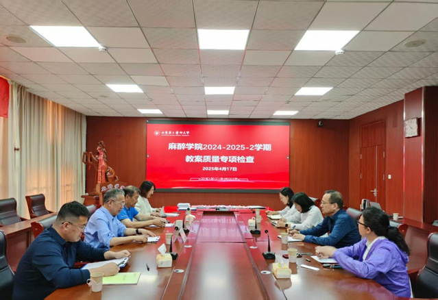 4月17日下午,麻醉学院在学院会议室召开2024 - 2025学年第二学期教案质量专项检查会议。学校教育教学质量督导评估专家委员会专家胡温庭教授、隽兆东教授,学院二级督导专家,教研室主任及秘书参会,副院长孙丽娜主持会议。