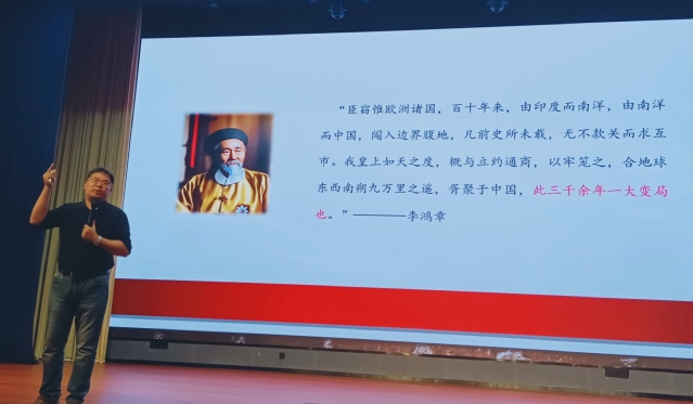 为庆祝人民海军成立76周年,4月22日,马克思主义学院举办了“以史为鉴,向海图强”思想政治理论实践课专题教学,由马克思主义学院思政课兼职教师张帅主讲,2023级、2024级本科生代表1100余人参加。