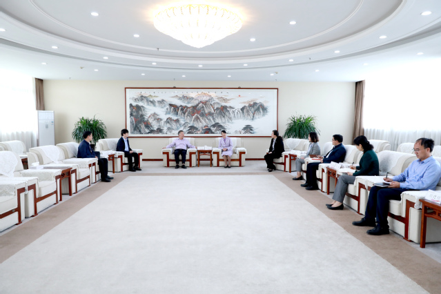 4月24日下午,山东省智能诊断技术创新中心主任于长斌一行来必赢官网洽谈科研合作事宜。校长管英俊、副校长梁淑娟会见客人并座谈交流。