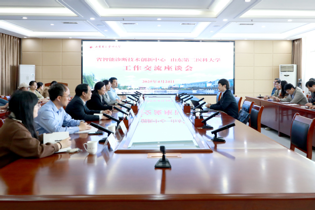 座谈会上,管英俊对山东省智能诊断技术创新中心一行的到来表示欢迎。她简要介绍了学校基本情况以及近年来在人才培养、科技创新、国际合作等方面的工作和取得的成绩,并希望双方借此机会精准对接、资源共享、优势互补,在智能诊断技术、多组学质谱数据分析等领域深化合作。双方就智能诊断技术的前沿进展、多组学质谱数据分析的科研合作模式、国际合作办学与研究生联合培养的可行性进行了深入而富有成效的交流。