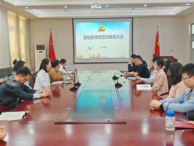 4月24日,基础医学院召开专题警示教育会,会议由学院党委书记楚新艳主持,学院各党支部班子成员、各科室教师代表参加会议。