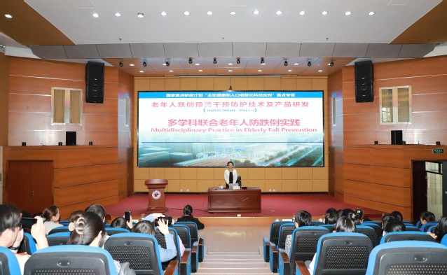 座谈会后,皮红英在办公楼一楼报告厅作题为《老年人跌倒预警干预防护技术及产品研发》的学术报告,以“多学科联合老年人防跌倒实践”为主题,解析了国家重点研发计划中跌倒预警技术、防护产品研发及跨学科协作模式在老年健康领域的应用成果。
