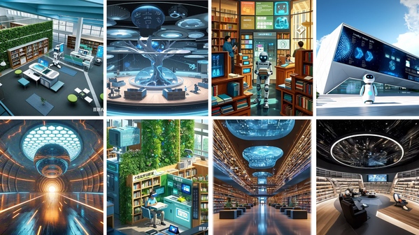 活动围绕“AI赋能,探索未来图书馆”,激发师生运用AI绘图工具,将思路构想转化为具象设计,130余份作品生动展现科学技术与阅读空间的有机融合,展现了对未来图书馆的憧憬和愿望。《云端元界书苑》着重用户体验感,以AI技术打造宁静致远的知识殿堂;《星际图书馆》引领读者遨游星际,探索宇宙中的知识宝藏;《光年书驿》似开启一场穿越时空的阅读征途;《量子书巢》借量子概念构筑独特新颖的书房,展示了科技赋能阅读的奇妙场景;《云境书廊: AI编织的立体知识生态圈》以AI绘就云端书廊,构建了立体多元的知识获取新生态;《虹彩书界》用绚丽色彩装点书的世界,为阅读插上腾飞的翅膀,感受学无止境的奇思妙想;《超维书栈》将眼光放远全球,实现在图书馆便可畅享专业前沿资源;《未来学习舱》将科技、人文与自然深度融合,打造实现“书香与数字”交相辉映的个性化特色图书馆。