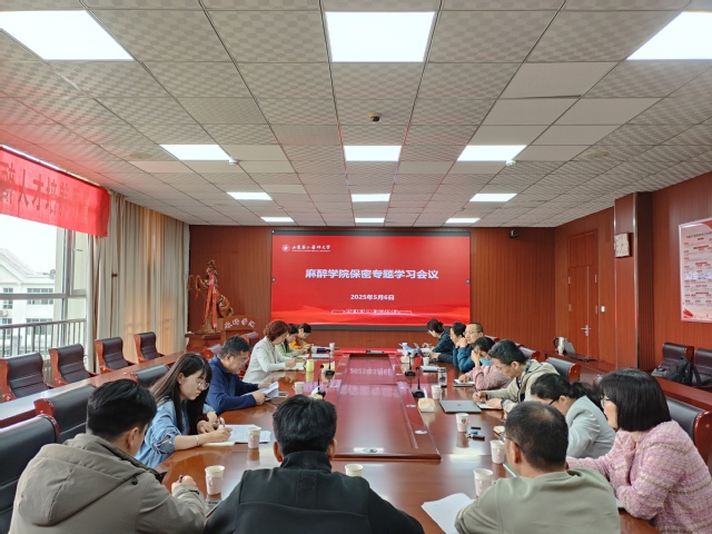 近日,为深入学习贯彻习近平总书记关于保密工作的重要讲话和重要指示批示精神,进一步增强学院广大师生的保密意识,麻醉学院开展保密专题学习,学院全体教师参加会议。