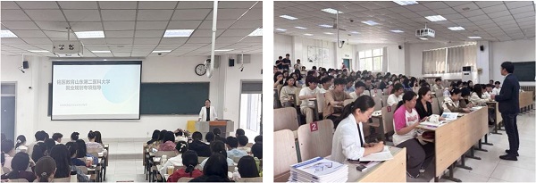 讲座由铭医教育尚坤老师主讲,他围绕医学毕业生毕业选择,深入剖析就业、考研、创业的利弊,内容涵盖就业方向、考研优势与创业风险。在“公立医院、事业编招聘流程”模块,他梳理从公告发布到公示录用各环节;在“公立医院事业编岗位选择”部分,详细讲解城市、医院、岗位报考条件等选择因素;在“笔试和面试备考指导”环节,具体解读专业知识、医学基础、公共基础等笔试考查重点,分析结构化面试等常见面试形式并分享技巧;最后,在“如何高效备考”模块给出实用建议,指出笔试准备要做好科学规划、知识梳理等,面试准备注重模拟训练、知识强化等,有效指导同学们精准就业。