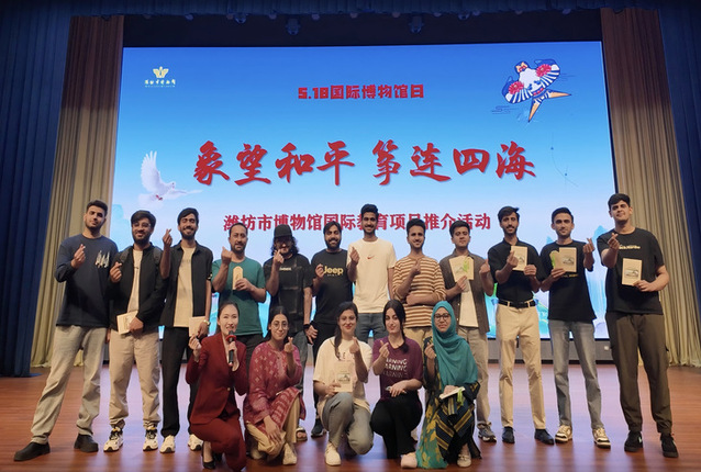 活动现场,潍坊市博物馆专业讲解人员围绕潍坊“龙象之城”生物多样性体验、“‘和’以潍坊”历史记忆传承和平基因、潍坊风筝文化三个板块进行了兼具知识性、趣味性与文化传承意义的精彩讲解,通过实物展示、互动问答等形式,激发了国际学生浓厚兴趣,让同学们对潍坊的历史文化与现代风采有了更加深入的了解,感受到潍坊城市文化的独特魅力与深厚底蕴。