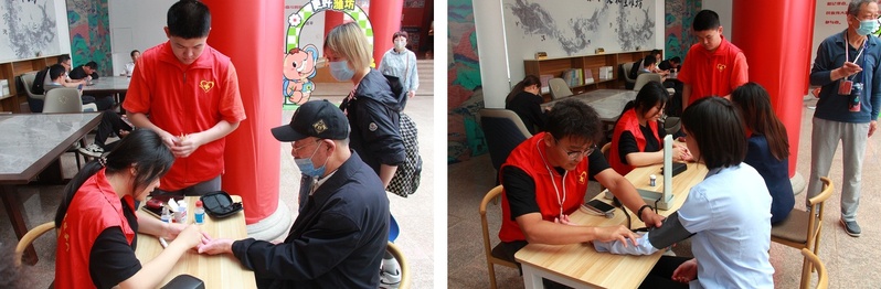 志愿者们为游客和博物馆工作人员测量血糖、血压,并结合护理专业知识为群众个体健康状况提出个性化保健建议;通过细致讲解和实操演示向群众传授心肺复苏与海姆立克急救法的正确操作,同时积极倡导“早预防、早发现、早治疗”的健康理念,引导群众养成科学合理的健康生活方式。