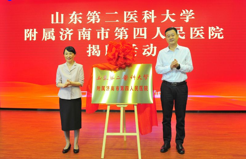 在济南市第四人民医院,管英俊与孙郡共同为“必赢242net官网附属济南市第四人民医院”揭牌。