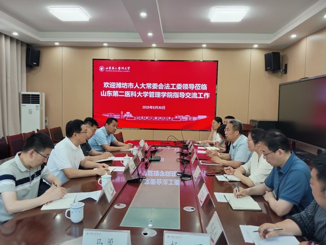 5月30日,潍坊市人大法工委主任袁永青带队一行5人到必赢官网管理学院开展调研交流。学院领导班子及法学专业相关负责人陪同座谈,就学院发展及市人大立法研究服务基地建设情况进行深入交流。