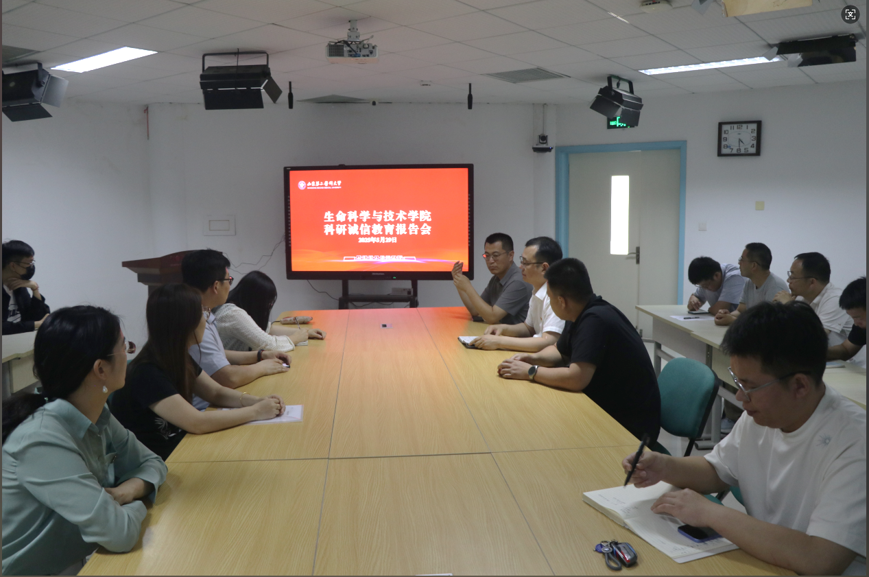 5月29日,生命科学与技术学院开展科研诚信教育活动,副院长孙同毅、王国辉、全体教职工和研究生代表参加。