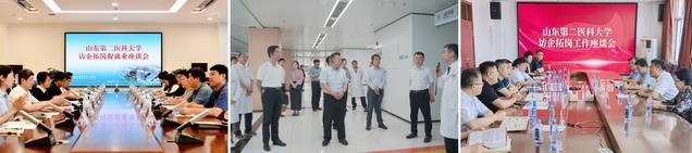 校党政领导班子成员赴多家医疗卫生单位走访交流,与负责人围绕医疗卫生人才联合培养、产学研协同创新、毕业生就业等方面展开深入洽谈,并达成初步合作意向。学校与东营市人民医院、胜利油田中心医院签订就业创业教育合作实践基地协议书,为山东省康复医院、济南市第三人民医院、日照市人民医院、中医医院、华洋白求恩医院、日照心脏病医院、高密市人民医院、高密市中医院等单位授牌,建立就业创业教育合作实践基地,在山东泽普医疗科技有限公司设立就业创业校企合作基地。在有实习学生的单位,校领导现场察看了教室、实验室、实训中心、宿舍、餐厅等教育教学条件建设情况。