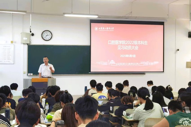 为帮助即将踏上临床见习征程的学生做好充分准备,6月5日,口腔医学院为2022级全体同学举行了见习动员会。院长丁刚、党总支副书记张劲、副院长冀洪海和辅导员参加活动,为即将步入实践新阶段的学子们指引方向、注入信心。