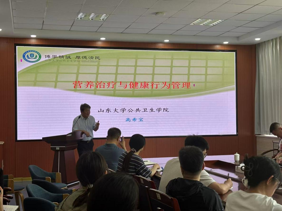 报告会由公共卫生学院院长郑文贵主持。高希宝教授以“营养治疗与健康行为管理”为题,系统介绍了慢性非传染性疾病的现状,并从营养素的角度分析了蛋白质、脂肪、碳水化合物三大营养素摄入存在的问题,进一步指出必需营养素的摄入减少或失衡是慢性非传染性疾病的主要原因,在此基础上提出了营养保健预防策略。讲座中高希宝教授同公共卫生学院的教师和研究生穿插进行了沟通和交流,现场气氛热烈。