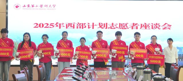 管英俊为西部计划志愿者颁发了特殊补助金。她高度赞扬了同学们奉献基层、服务西部的家国情怀,并对志愿者提出三点希望:一是坚定理想信念,在服务奉献中砥砺初心、淬炼品格;二是发挥专业所长,在躬身实践中增长才干、淬炼本领;三是勇当时代潮头,在创新实践中敢为人先,勇于探索。她勉励同学们以“国之大者”的胸怀,“生命守护”的担当,“青春先锋”的英姿,在西部广阔的舞台上,谱写无愧于青春的壮丽篇章。她叮嘱志愿者们,母校永远是同学们的坚强后盾,时刻关注大家的成长,期待同学们用实际行动展现山二医学子昂扬向上、奋发有为的时代风采。