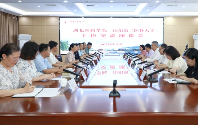 6月30日,湖北医药学院院长罗杰一行来校考察交流。校长管英俊、副校长梁淑娟会见客人并亲切交流。