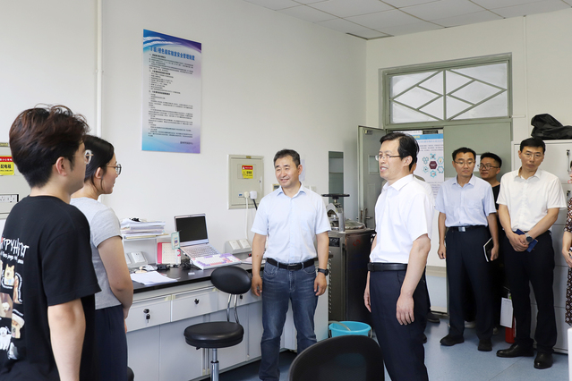 在医学研究实验中心,张建华与正在进行实验的师生亲切交流,详细了解实验室管理服务、仪器设备共享使用、特种设备规范管理和危化品购置管理处置情况,对规范实验室管理、提高实验室利用效能提出了指导要求。