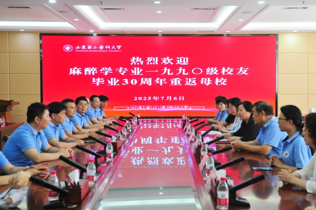 7月6日,学校麻醉学专业90级校友重返母校庆祝毕业三十周年。副校长梁淑娟会见校友并座谈。