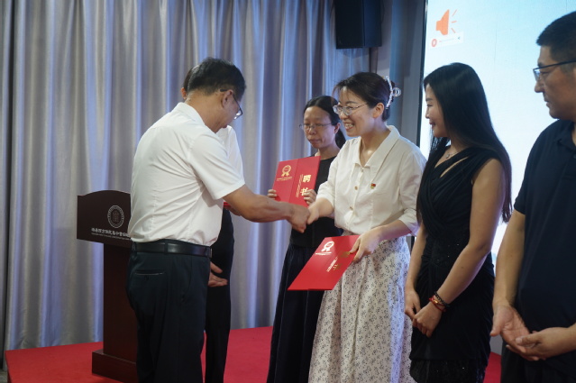 仪式上,博物馆负责人王磊致辞,强调和平文化是人类共同的精神财富,潍县西方侨民集中营作为承载特殊历史记忆的文化地标,是传播和平理念的重要载体。外国语学院党总支书记张立在讲话中指出,首先感谢博物馆与学院的携手合作,为师生提供了丰富的实践机会。她表示英文讲解志愿者老师们未来将深挖集中营故事,凭专业素养和热情向国际友人讲述历史,让和平文化的种子在跨文化对话中生根发芽。之后,活动进入聘任仪式环节。正式聘任韩向华、谭霞、李伟、刘婷婷四位英语教师为“博物馆英文志愿讲解员”。博物馆馆长为四位老师颁发聘书,受聘老师纷纷表示,将以此次聘任为契机,结合自身专业优势,为博物馆的学术研究、展览策划、教育活动设计等提供支持,助力和平文化走向更广阔的国际舞台。